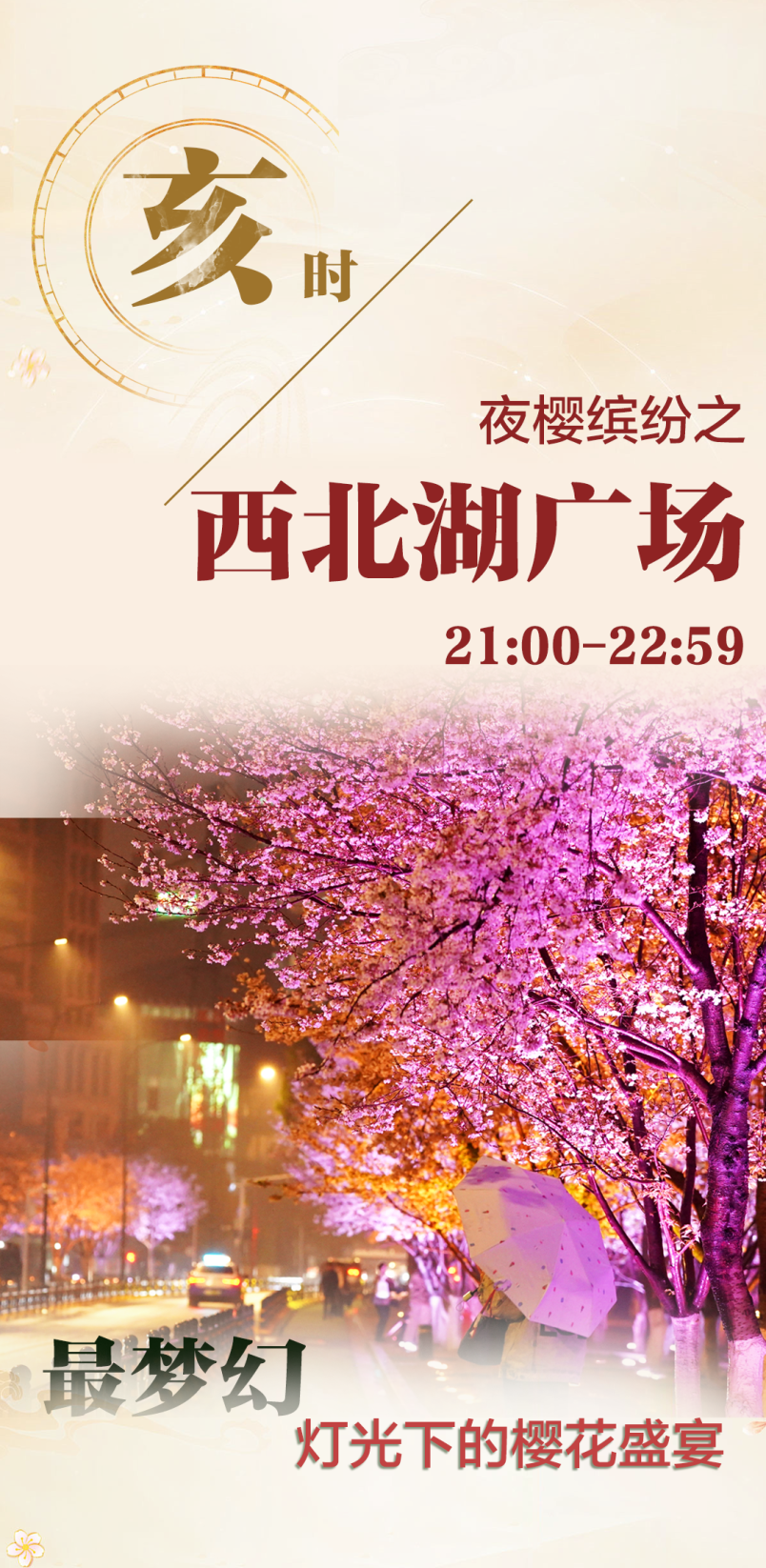 观湖景、赏夜樱。