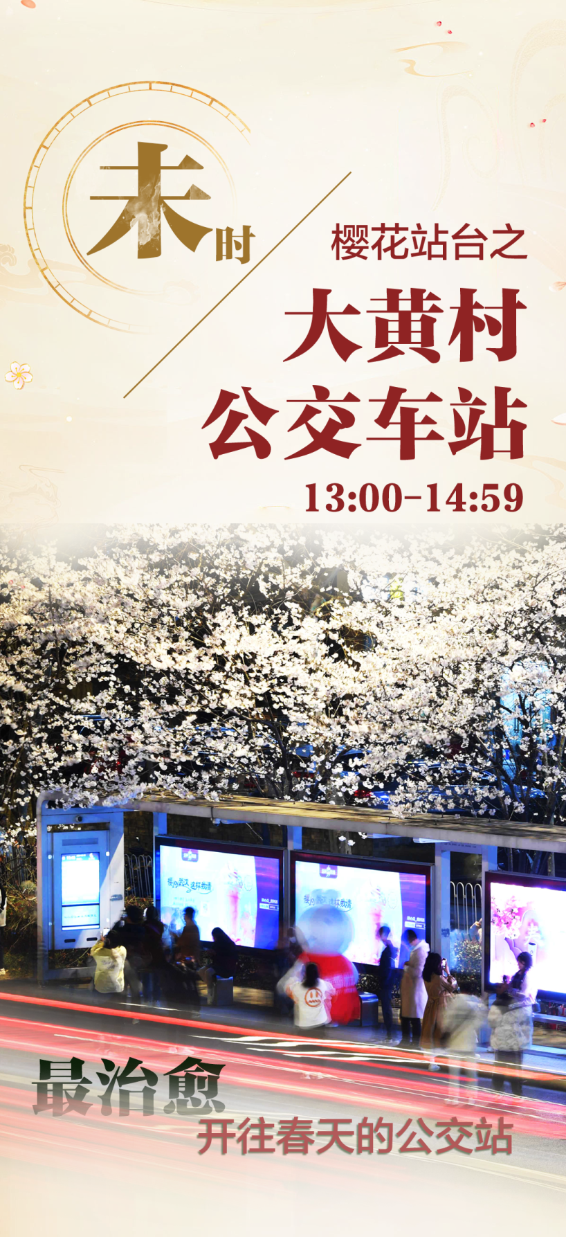 珞喻东路的春风拂过,大黄村站台便坠入樱色海洋。公交车载着晨光与暮色穿梭,粉白花瓣簌簌落在候车人肩头。从光谷四小天桥往下拍,氛围感在快门声里定格成时光书签。今年,樱花车站升级,打造了透明花瓣形状的玻璃顶棚,等车间隙,抬头就能收下所有浪漫。